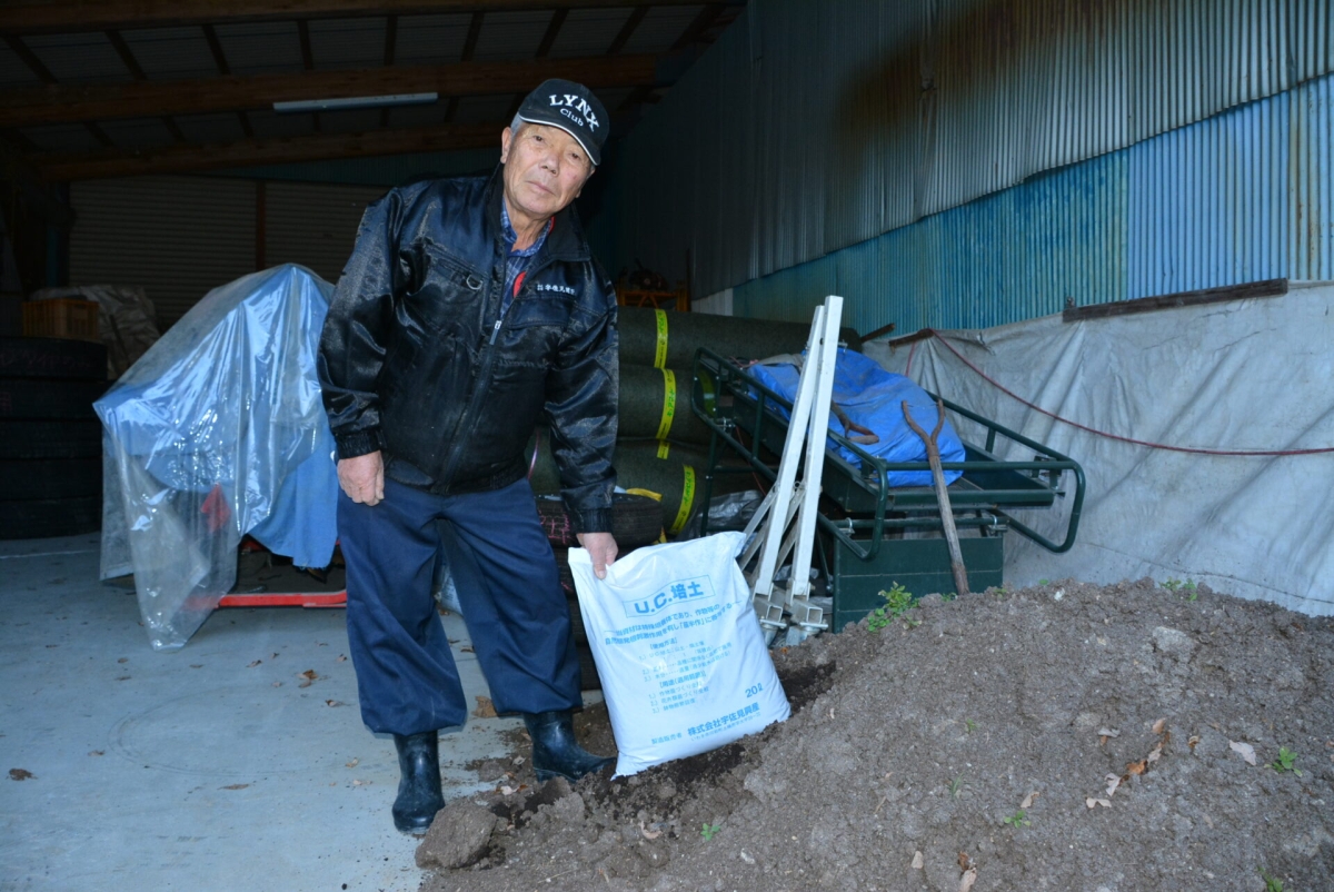 こちらは、宇佐見興産オリジナルの堆肥「活性UCM」(U…USAMI(宇佐見)、C…culture(培養)、M…material(資材))。販売もしています。