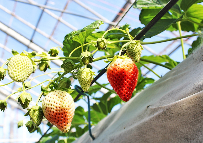 このような設備を導入して、化学肥料や農薬をなるべく使用しないようにしながら、安全なイチゴを栽培しています。