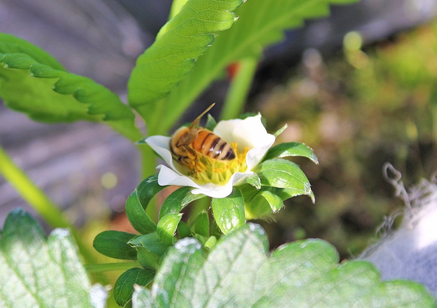 イチゴの受粉には、ミツバチを利用しています。