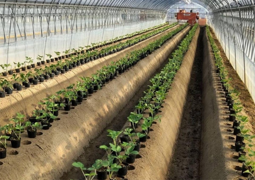 10棟の農業ハウスで、いちごの苗作りから栽培まで一貫して行っています。