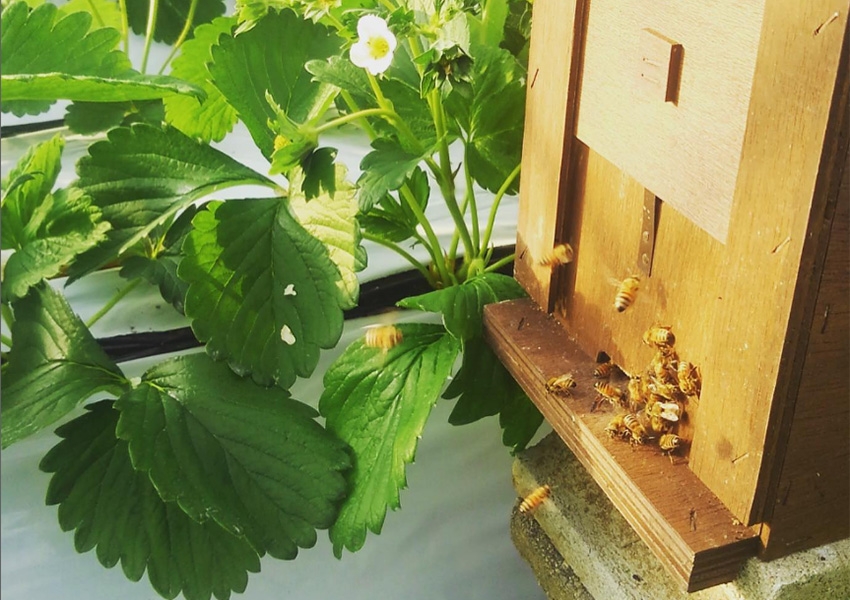受粉の役割を担うハチは、いちご作りを支える大事なパートナーです。