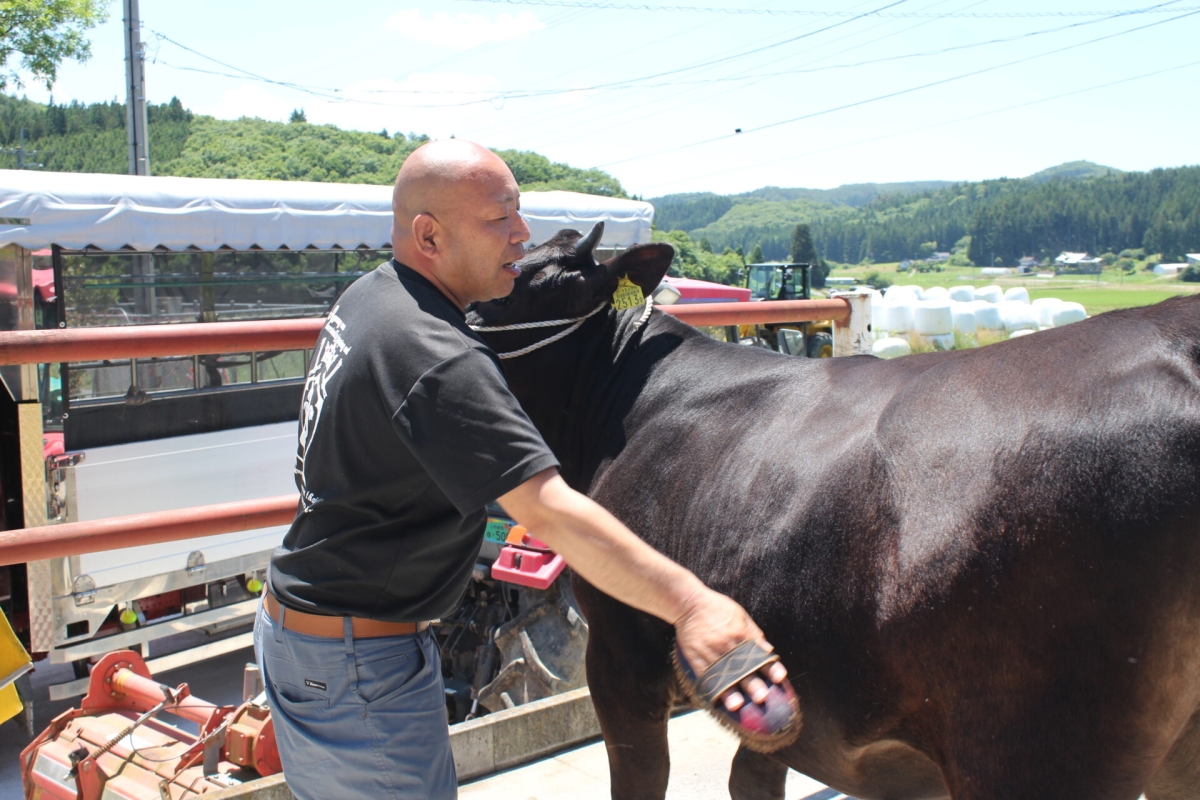 一頭一頭ストレスを与えないよう日々丁寧に育てていますが、市場に向かう前日と当日はいつもよりも特に念入りに、そして感謝の意を込めながらブラッシングをして送り出すそうです。