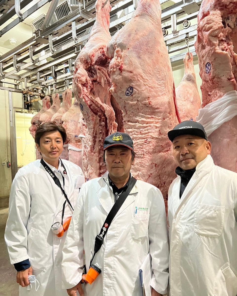 草野さんが育てた黒毛和牛をいわき市(小名浜)で唯一取り扱う、食肉の小売・卸売店の「ヤマスギ食品」さん(写真:左)。震災後、風評被害を払拭しようと取り組んできた中で繋がった一人です。