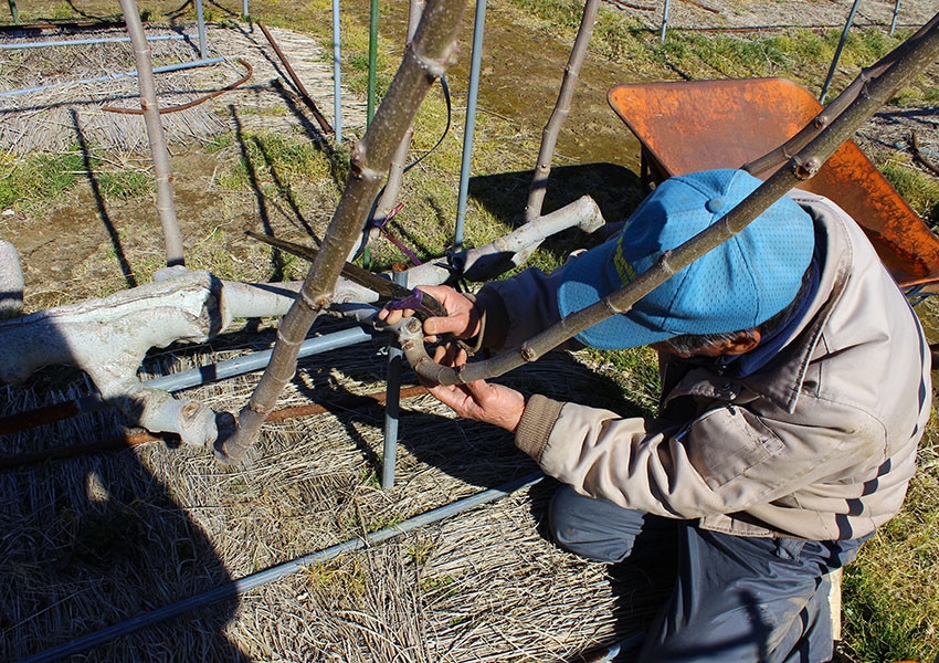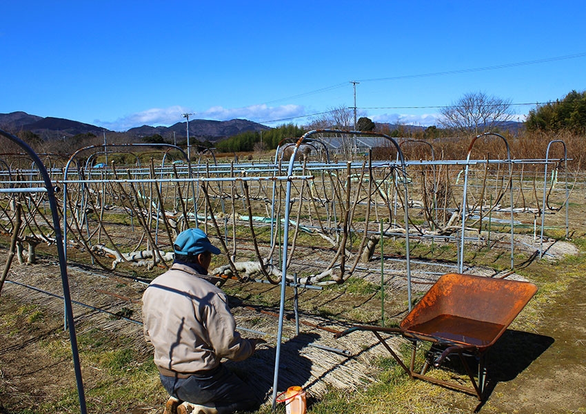 9月中旬頃から11月頃にかけてが収穫時期ですが、収穫時期以外にも剪定作業や藁の敷き替え等の沢山の作業があります。