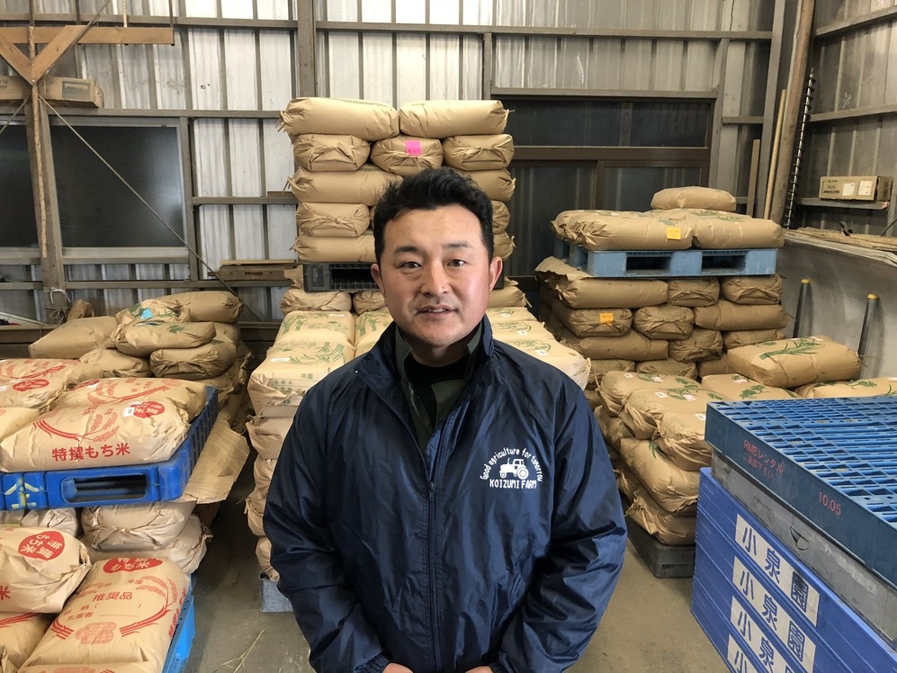小泉さんは広い敷地で良質なお米を作っています。