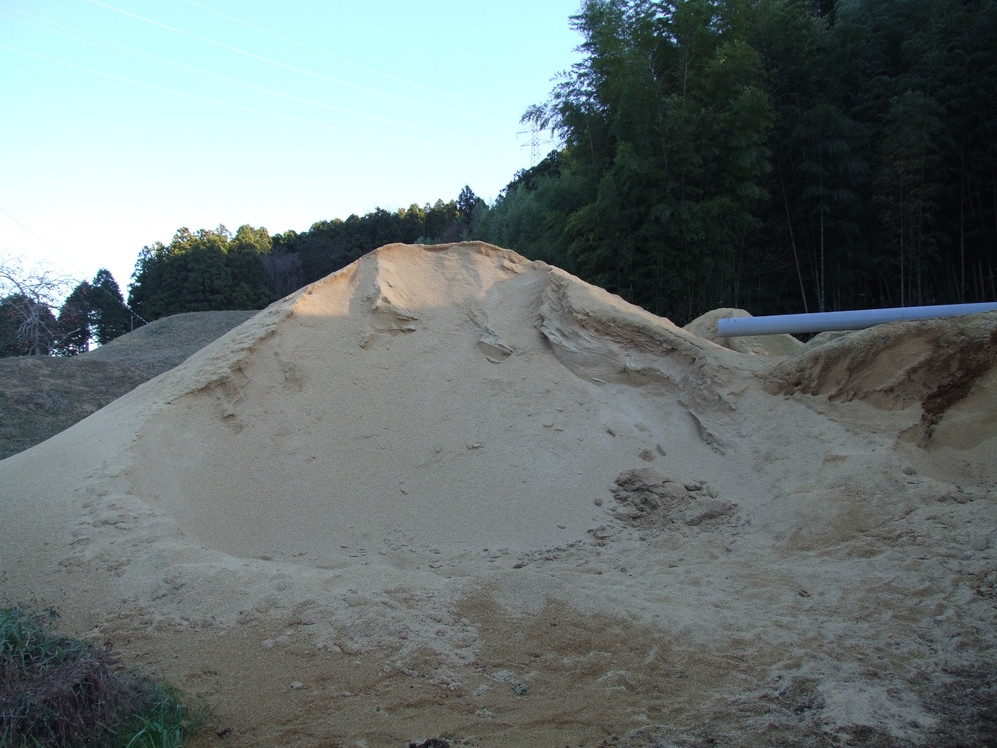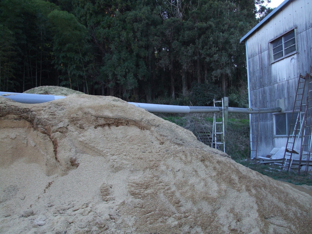 籾摺りの際に出る籾殻はこのように積み上がります。