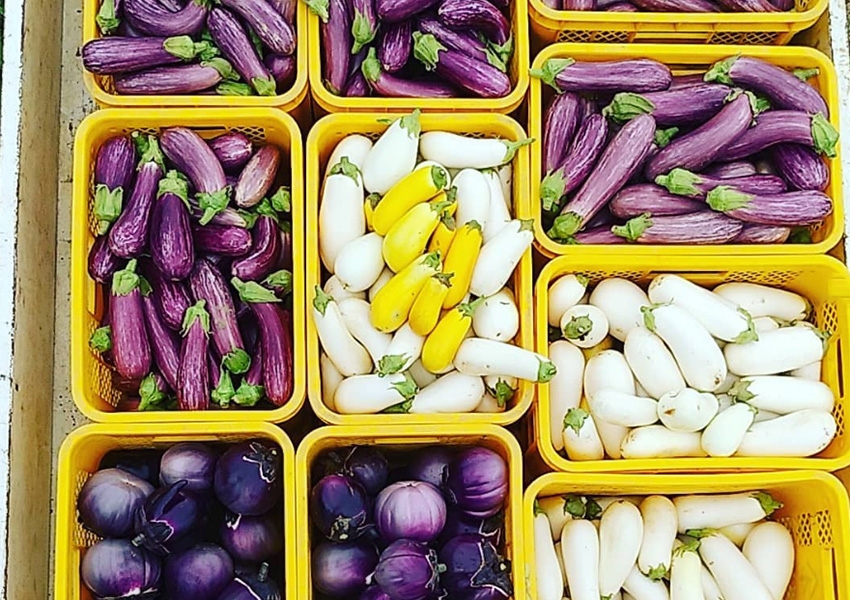 色とりどりで形もさまざまな西洋ナスも作っています。