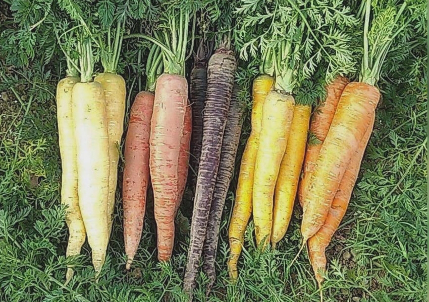 こちらは、坂本農園の代名詞とも言える黄、紫、赤、白、オレンジの5色のカラフルニンジン。