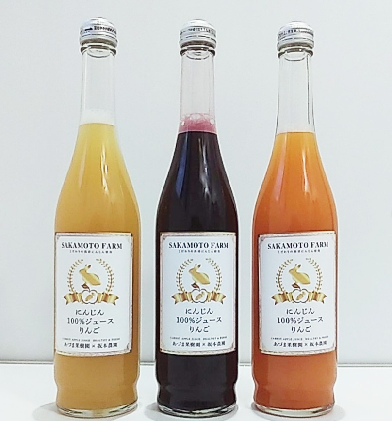こちらは、25年ほど交流のある福島市のあずま果樹園とのコラボ商品で「にんじんとりんごの100%ジュース」。