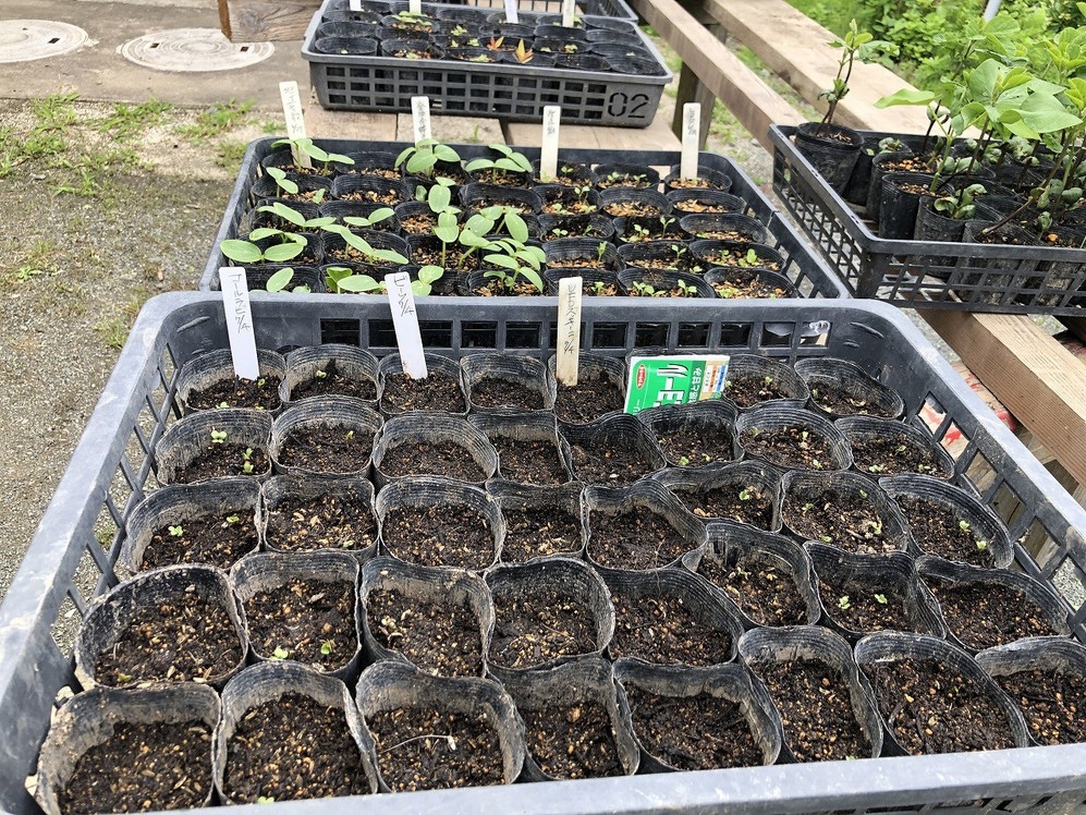 こぼれ種から勝手に発芽する作物もありますが、野菜はほとんど種から育てています。