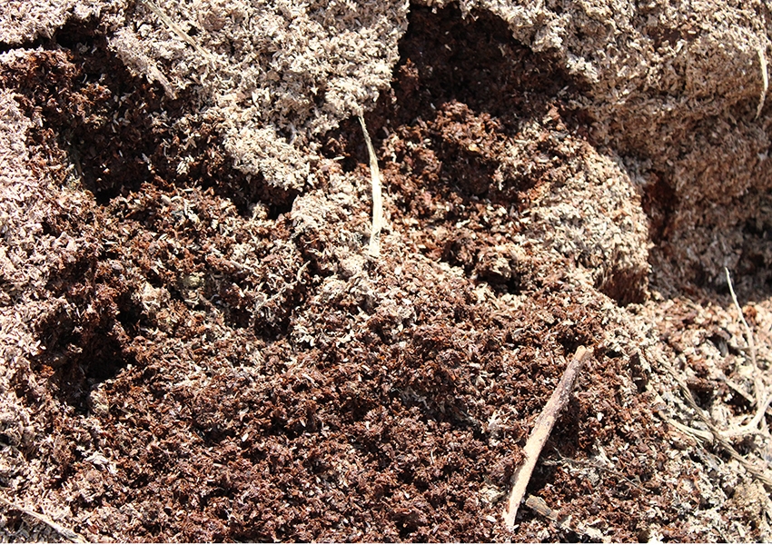 堆肥の中には、収穫を終えたトマトの茎や葉、間引きした実なども混ぜて発酵させ、環境に負荷をかけないように循環利用しています。
