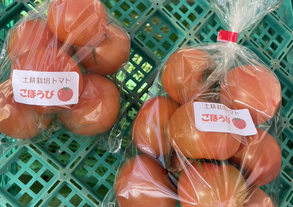 市場向けに出荷される「親バカトマト」が多くを占めますが、直売所等の販売用トマトは、品種名である「ごほうび」として販売しています。