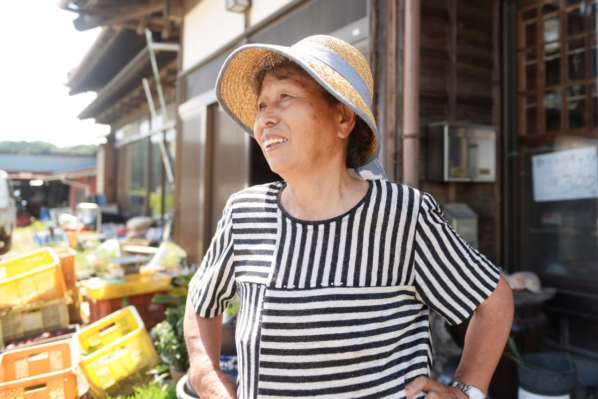 毎日、朝晩と畑に通いながら直売所に立つテイ子さん。夏はたくさんの野菜が収穫期を迎え大忙しです。