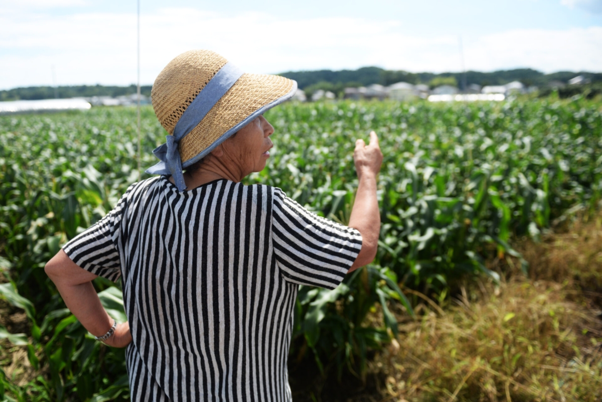 自宅近くにある畑では、現在ハウスと畑の両方で約1万本のトウモロコシを栽培しています。