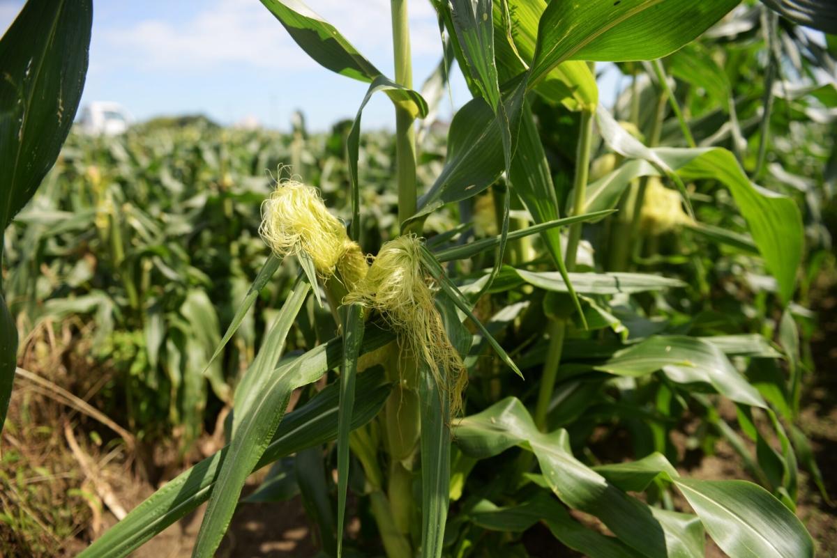夏の日差しを浴びてますます甘さを増していくトウモロコシは、ひげが茶色く色づいたら収穫時期です。