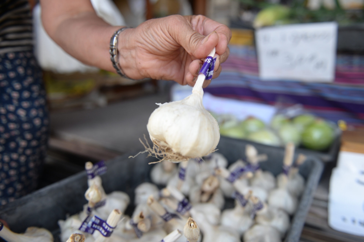 ホワイトにんにくやネギ、ニラも主力商品。白さが際立つホワイトにんにくは、栄養価が高く実がぎゅっと詰まっています。