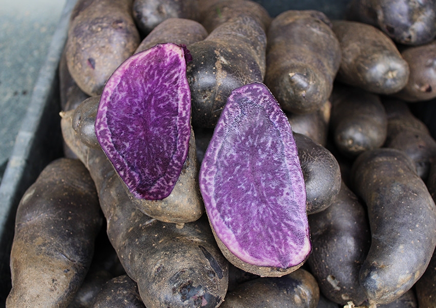 こちらは、いわきでは珍しい「シャドークイーン」というジャガイモ。