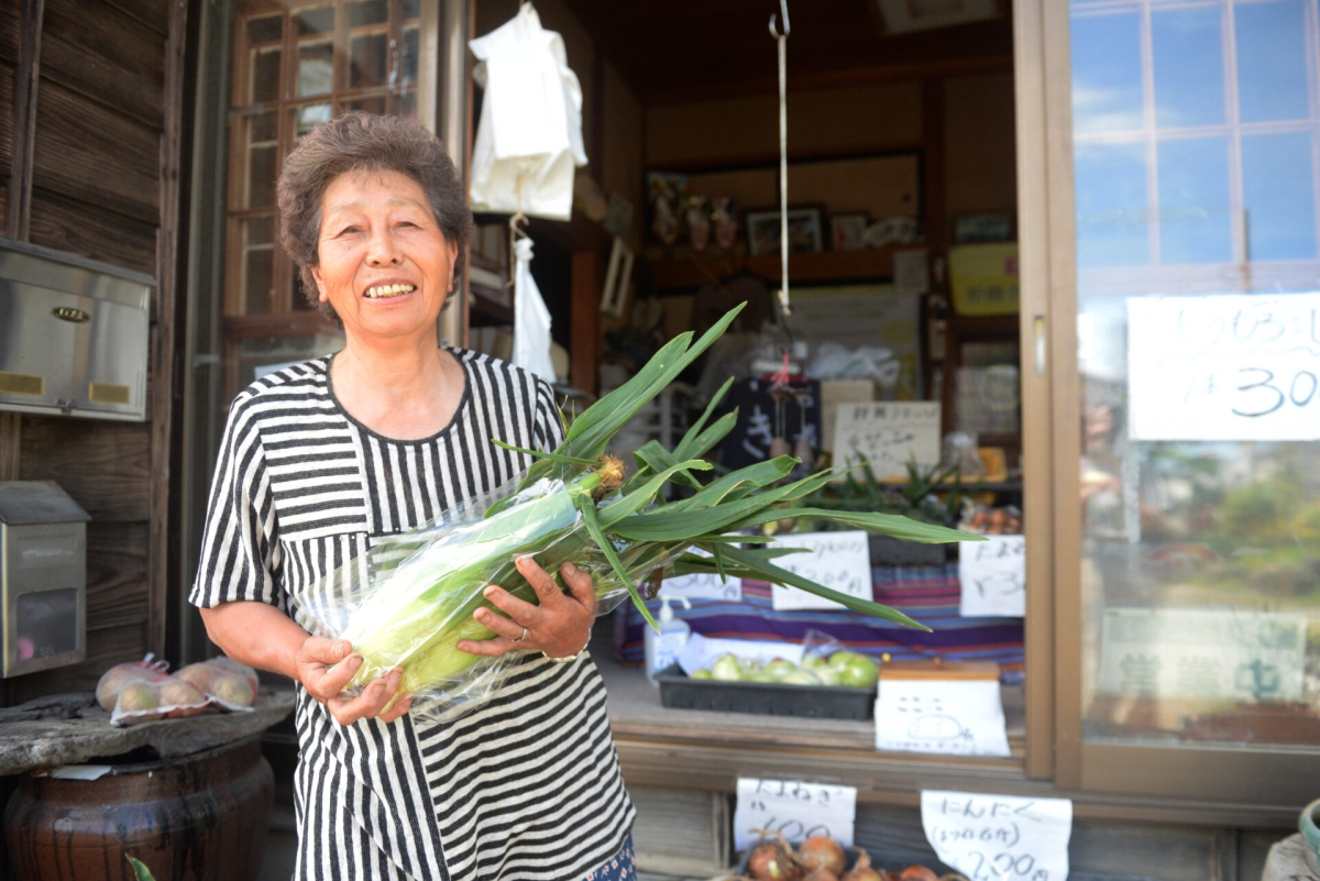 生産者である木田テイ子さんは早くから環境問題に着目し、「子どもたちに安全・安心な野菜を食べてもらいたい」と循環型の有機栽培にこだわってきました。夏井川下流にある畑で、生のまま食べられる「白いトウモロコシ」やネギ、ニラ等を主力にしながら、糖度の高い「フルーツトマト」、赤紫のジャガイモ「シャドークイーン」など他ではあまり見られない珍しい野菜も栽培しています。