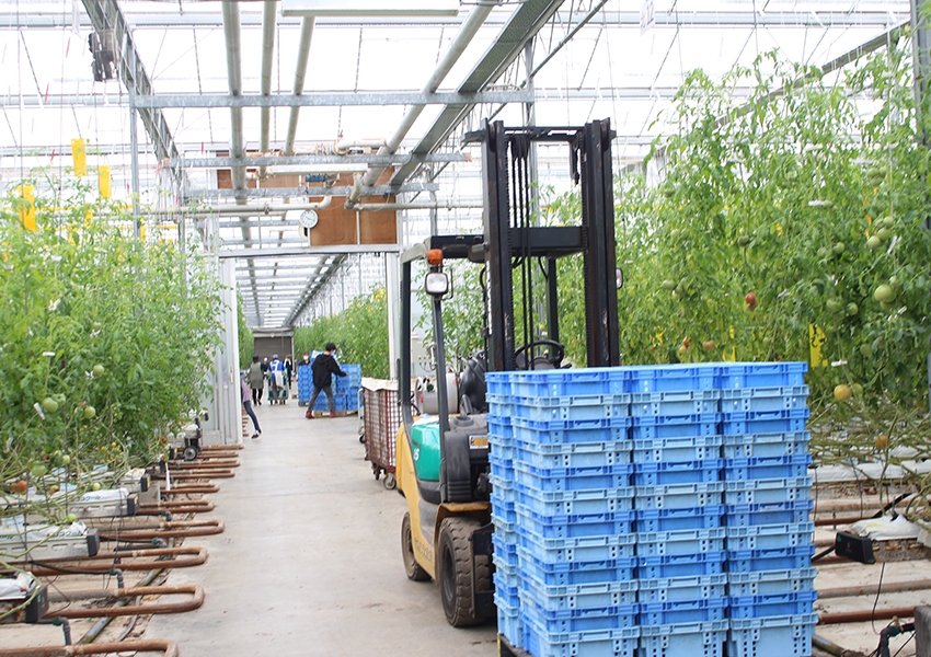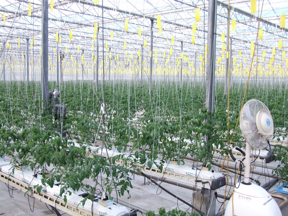 また、高さ5メートル以上あるハウスは、垂直方向に誘引して生長させるトマトの栽培に適しています。