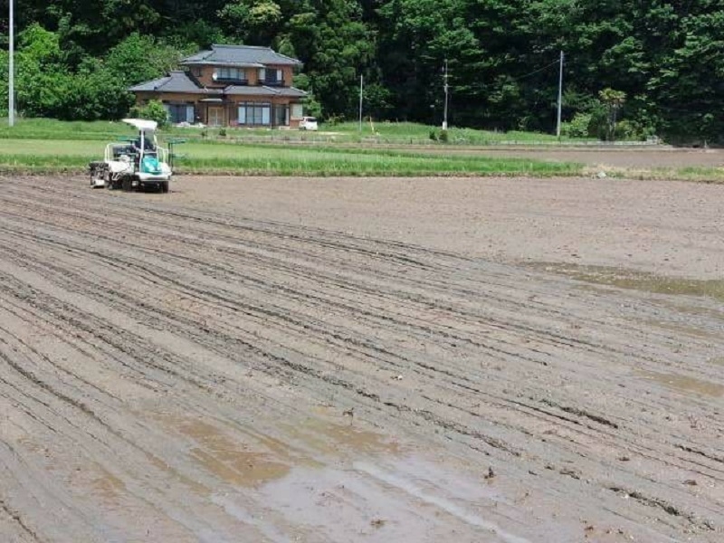 水を張った水田に直接種を蒔く「淡水直播(ちょくは)栽培」と、予め別の場所で苗を育ててから田植えを行う「移植栽培」の二刀流で、安定したお米の栽培をしています。
