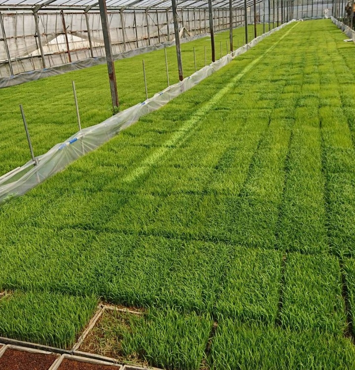 広々としたハウスで苗を育て、20〜30日ぐらいで田植えします。