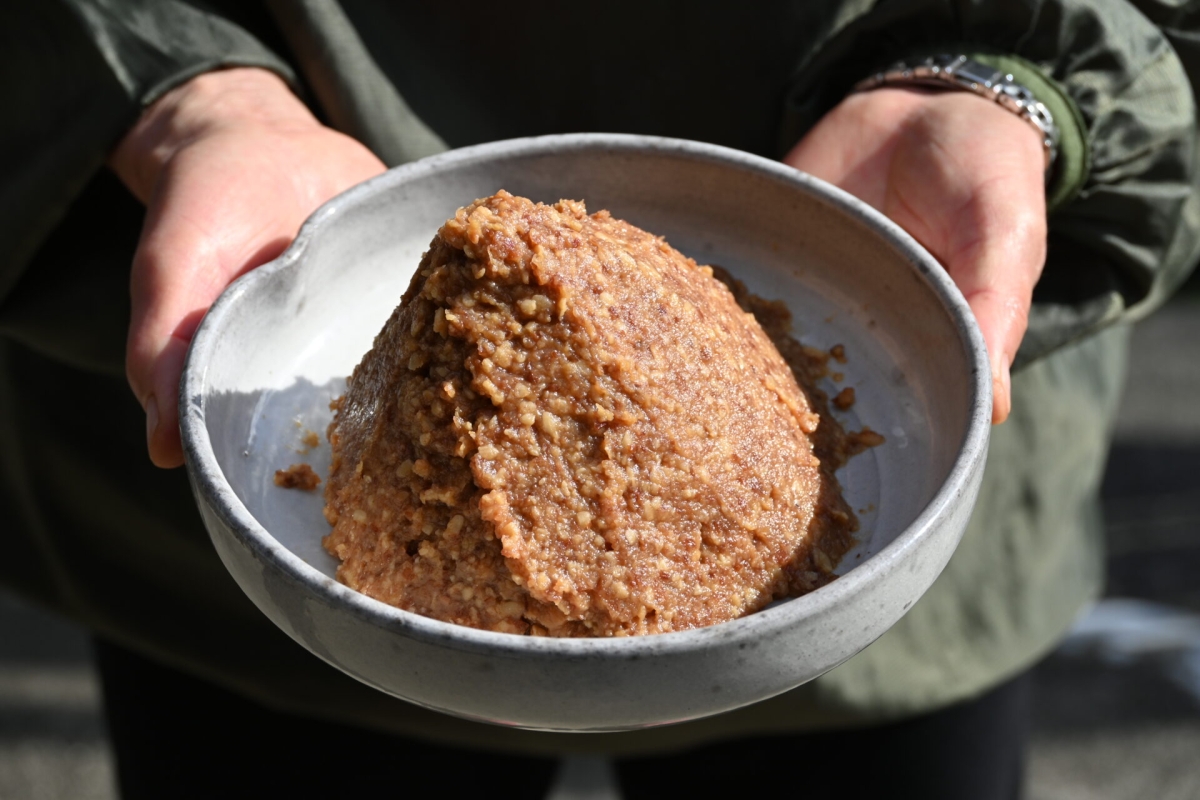 新妻さんが作るじゅうねんやさとまめ味噌は、市内の学校給食センターでも使用され、地域の子どもたちの「ふるさとの味」として、その記憶に刻まれています。