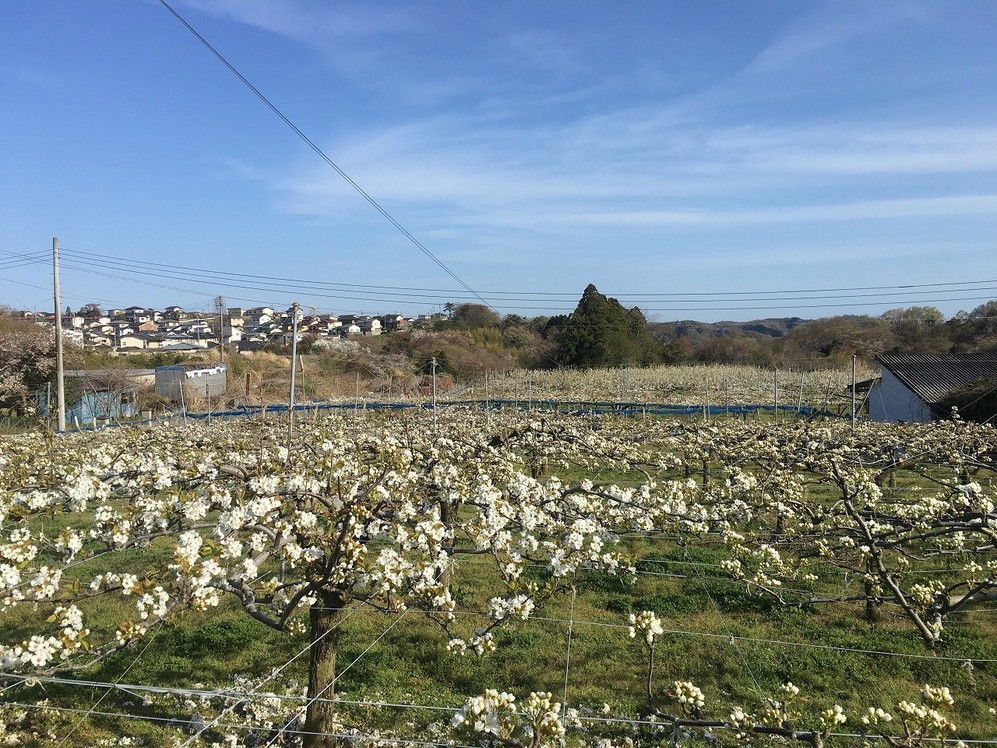 春、明治時代から受け継がれてきた果樹園に咲き誇る梨の花。
