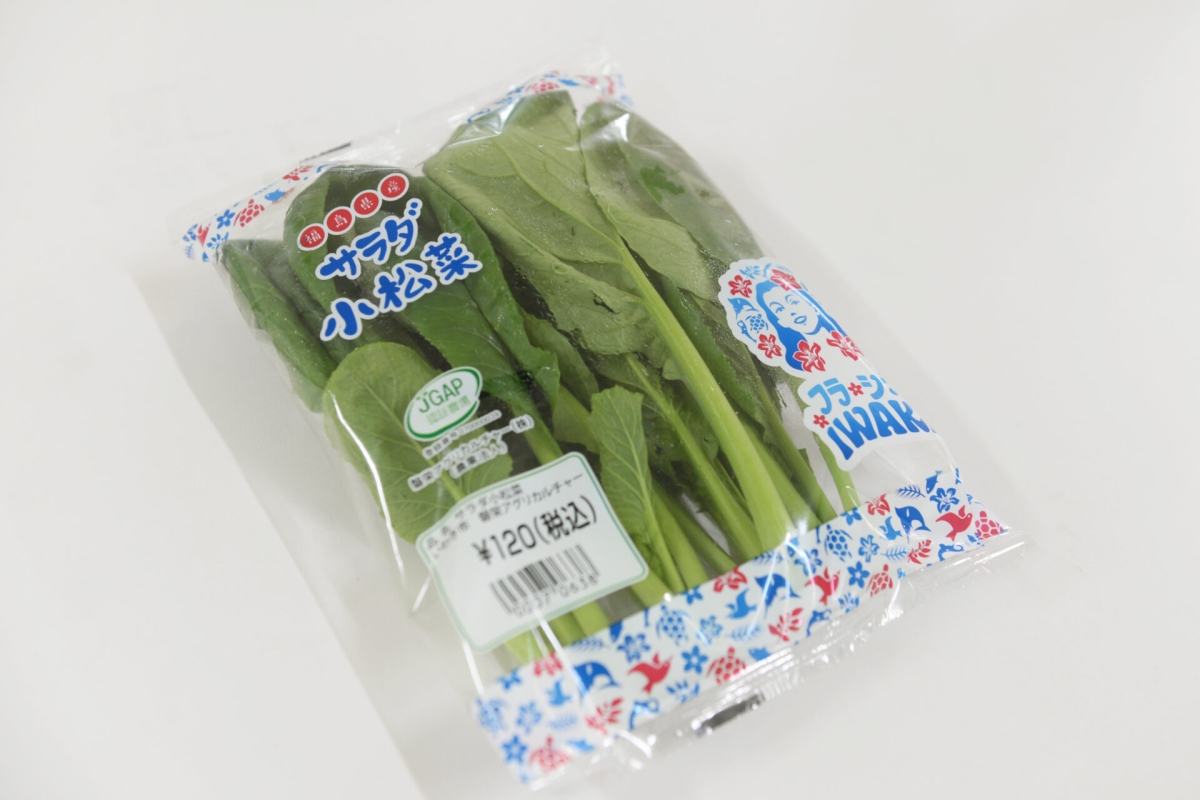 新商品のサラダ小松菜はえぐみが少ないため、生のままサラダのようにも食べてもOK。野菜の苦手なお子様にもおすすめです。県内の大手スーパーのほか給食センターにも出荷されています。