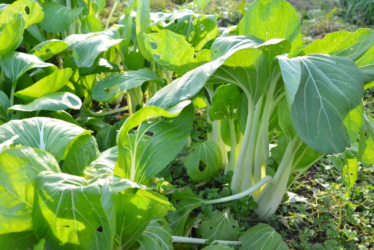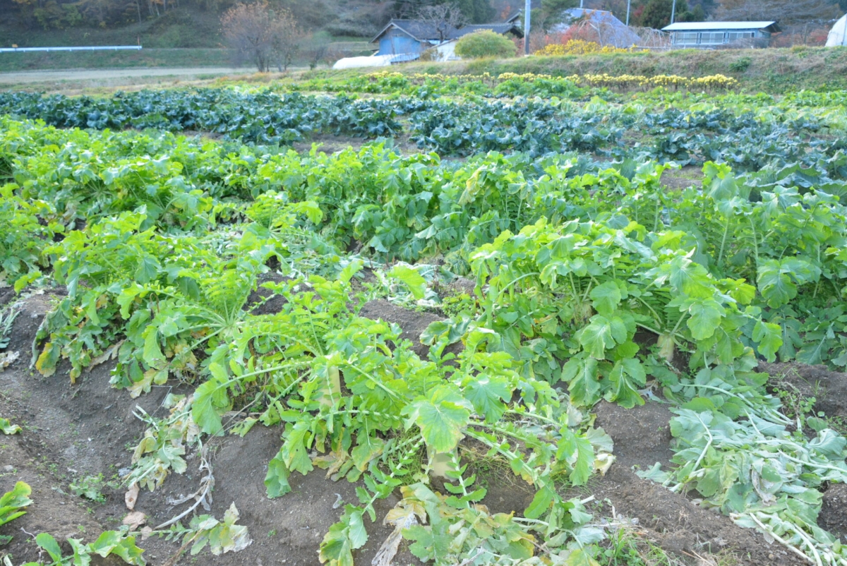 こちらは春の収穫を待つ「へらな」。正式名称は「雪白体菜(せっぱくたいさい)」。秩父地方では「しゃくし菜」とも呼ばれています。
