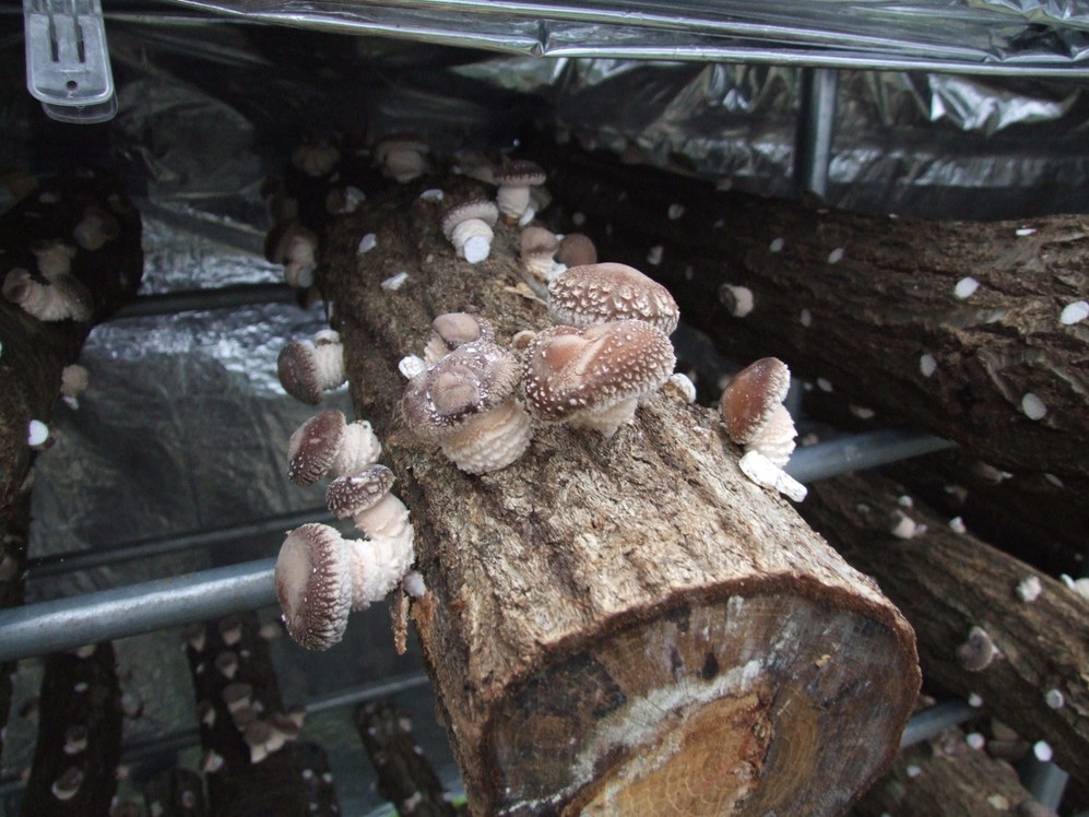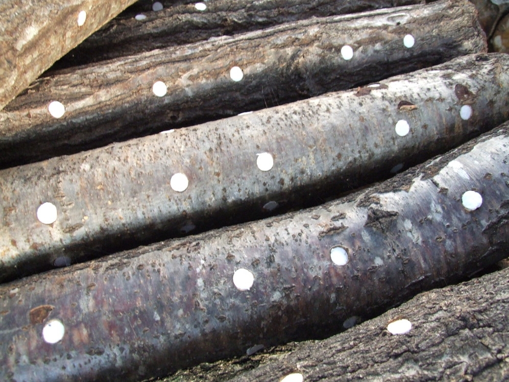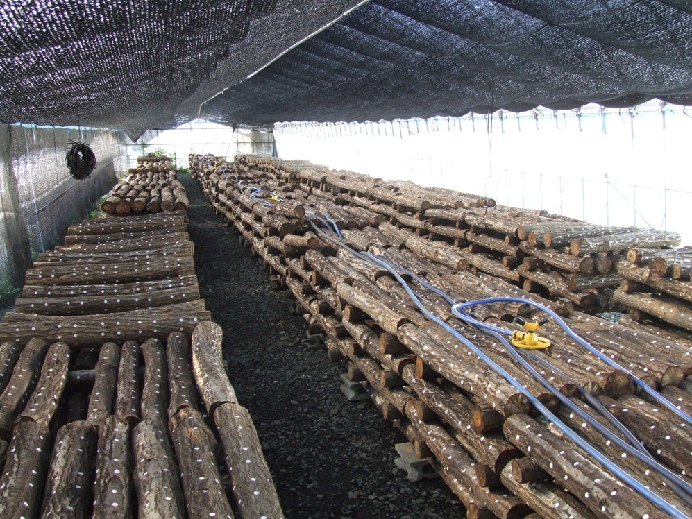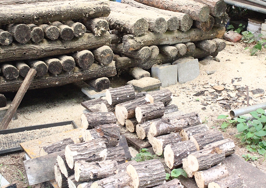 1年の収穫を終えたホダ木には、まだ菌が残っていて2年目も収穫ができます。