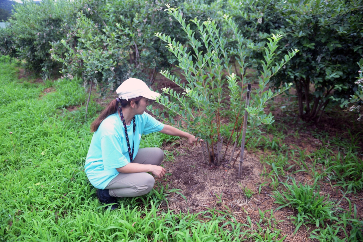「視察の方から『どうやってるの』と聞かれるのですが、草刈りや枝のせん定をするぐらいで、ほとんど手を加えていないんです。お世話しすぎないので1本1本の木が貪欲なのかもしれません。」と辰野さん。農園のブルーベリーはもともと牧草地だったという肥沃な大地にしっかり根付き、自然の雨のみで成長しているそうです。