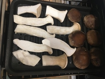 • しいたけ、エリンギ、パプリカをグリルで焼く。