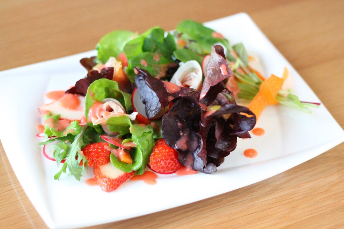 ドレッシングに使用するいちごは小ぶりで熟してないものでOK。