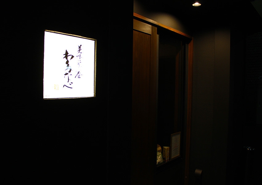 駅前を線路沿いにはしる大通りの一本隣の通り沿いで「美味いもん屋 わ多なべ」は、ひときわ上品な存在感を放っています。