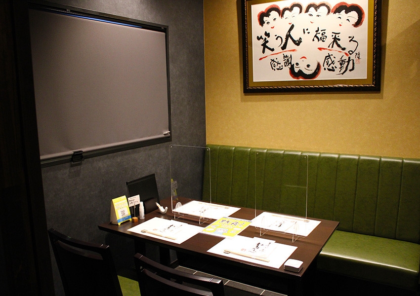 黒を基調とした落ち着いた雰囲気の店内には、カウンター席が6席、部屋席が15席あり、お1人様から20人程度の団体客まで、ご利用が可能となっています。