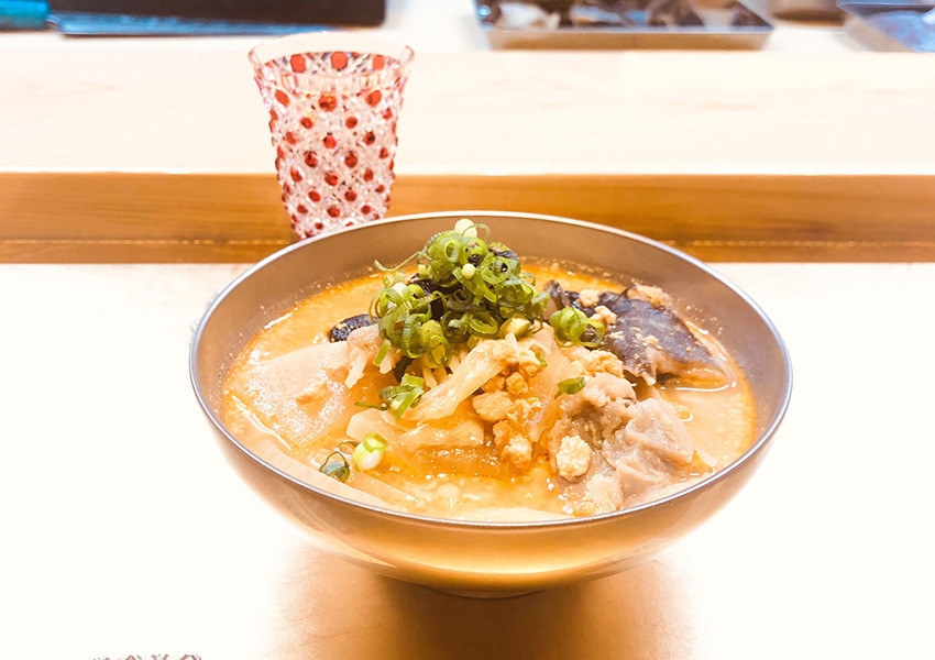 あんこうの皮と身、肝と一緒にいわきの生産者が丹精込めて育てた大根とネギが使われているこの一品は、11月から3月までの期間限定で提供されています。
