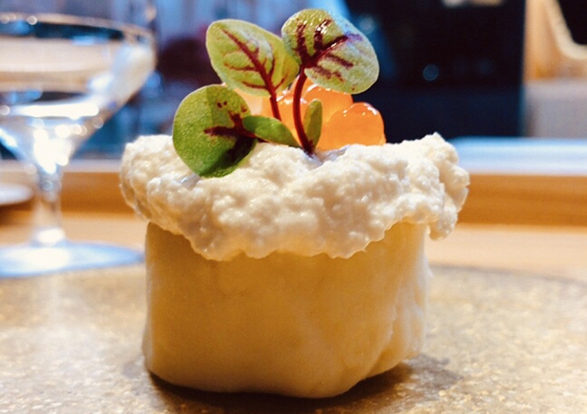 イクラとホイップクリームに和えた大根おろしが、マッシュポテトに乗っていて、中にはなんと海老が入っているおしゃれな逸品となっています。