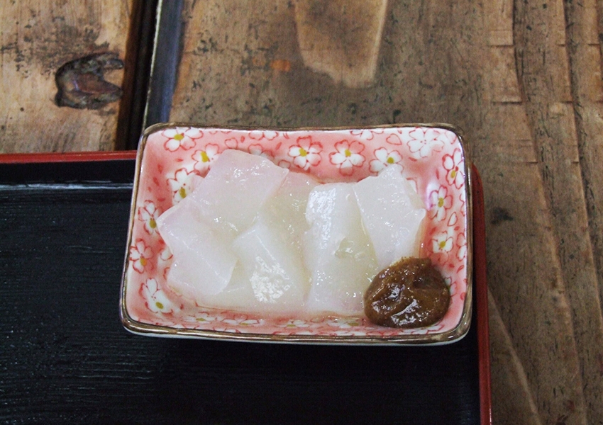 オリジナルの『おかず味噌』でいただく、『刺身こんにゃく』は、みずみずしくて、歯応え抜群。