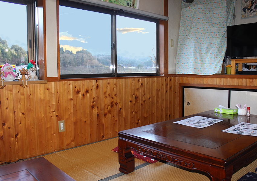 小上がりの和室からは、のどかな田園風景が一望できます。