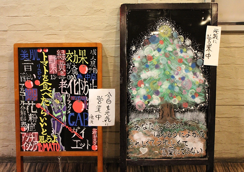 お店の入り口では、広報担当のスタッフさんが作ったボードがお出迎えしてくれます。