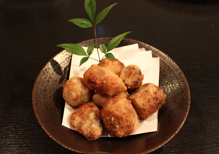 ニンニクを加えて唐揚げにすることで、お酒にもご飯にも相性抜群の「里芋(長兵衛)の唐揚げ」