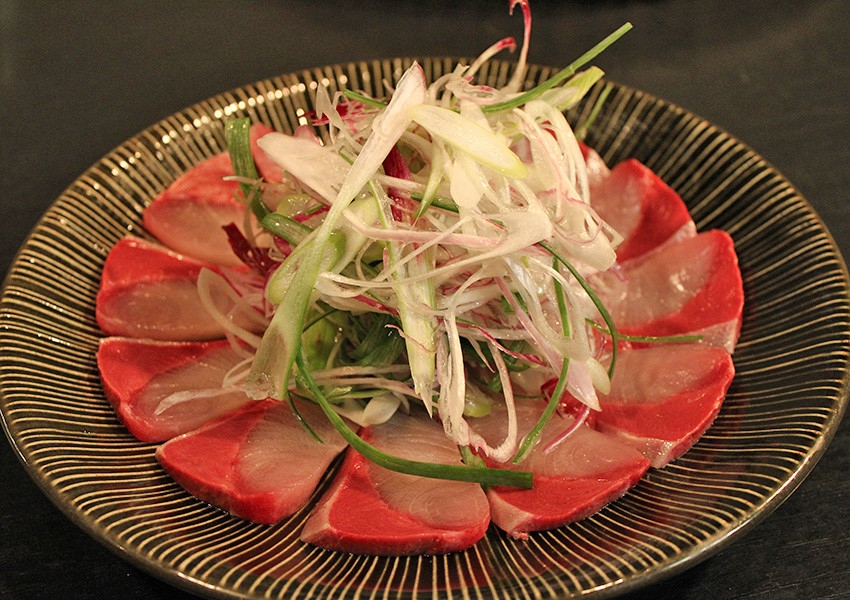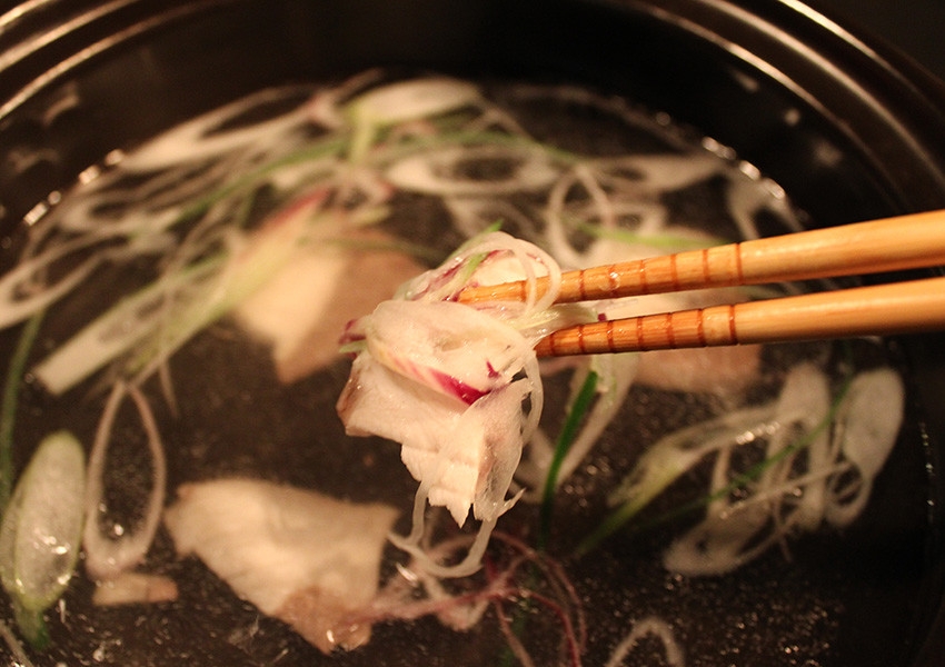 細長く刻んだいわきねぎと柔らかいブリが最高のハーモニーを奏でる「ねぎブリしゃぶしゃぶ」