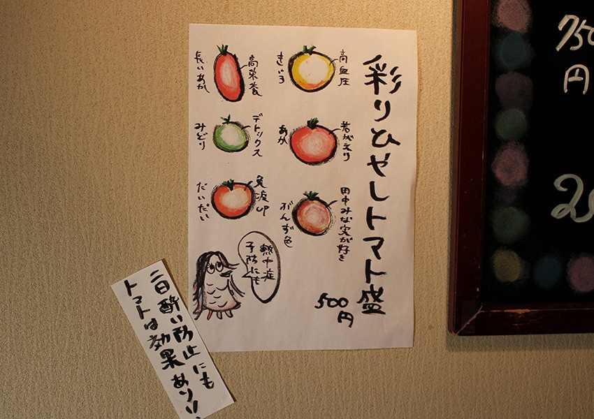 ボードには、トマトの効能などがイラスト付きで分かりやすく紹介されています。