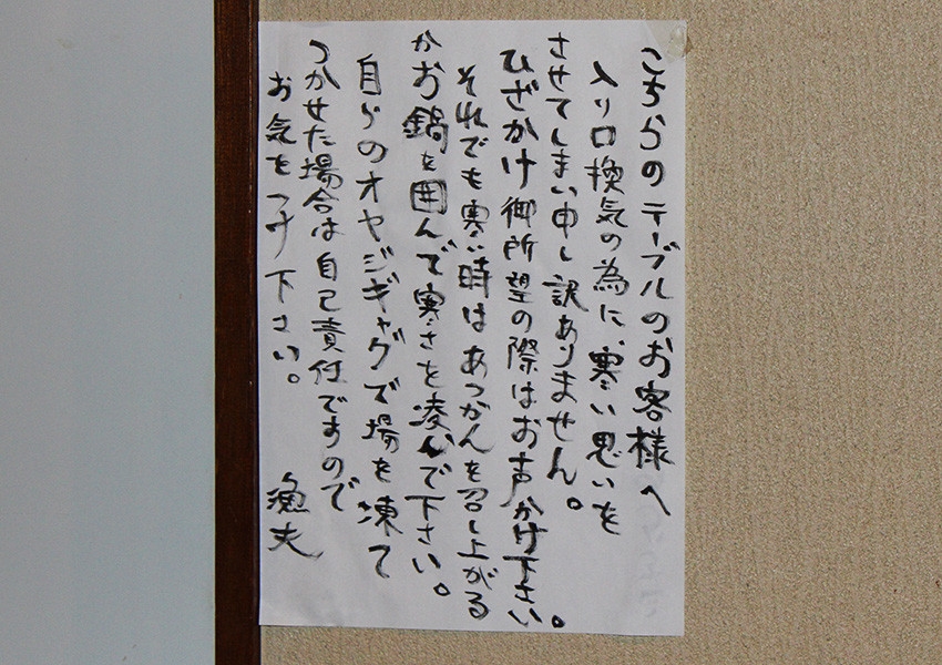 また、店内には、お客さんへの気遣いがユニークな張り紙で表現されていて、会話のきっかけになる要素が散りばめられています。