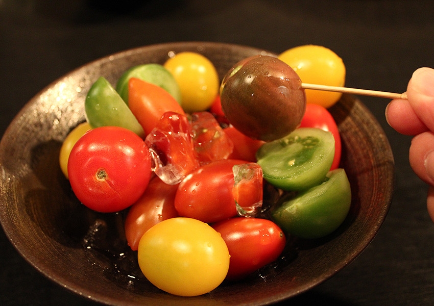 いわきで採れるさまざまな品種のミニトマトでカラフルに彩られた「冷やしトマト」