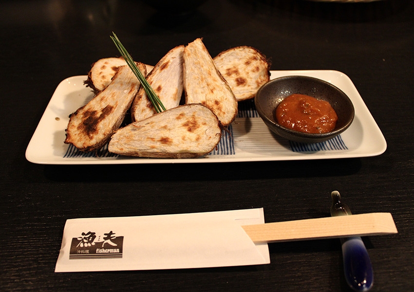 ねっとり濃厚な里芋(長兵衞)をシンプルに焼いて、漁夫オリジナルの柚子胡椒を混ぜた味噌が絶妙にマッチ!