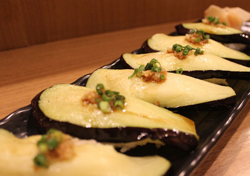 ファーム白石の千代子なすを使った握り寿司【8月〜10月限定】