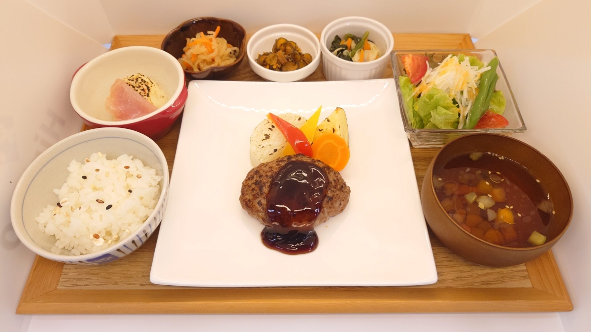 小鉢の副菜が3品とサラダ、ライス、スープの他、デザートとドリンクも付く大満足なセット。