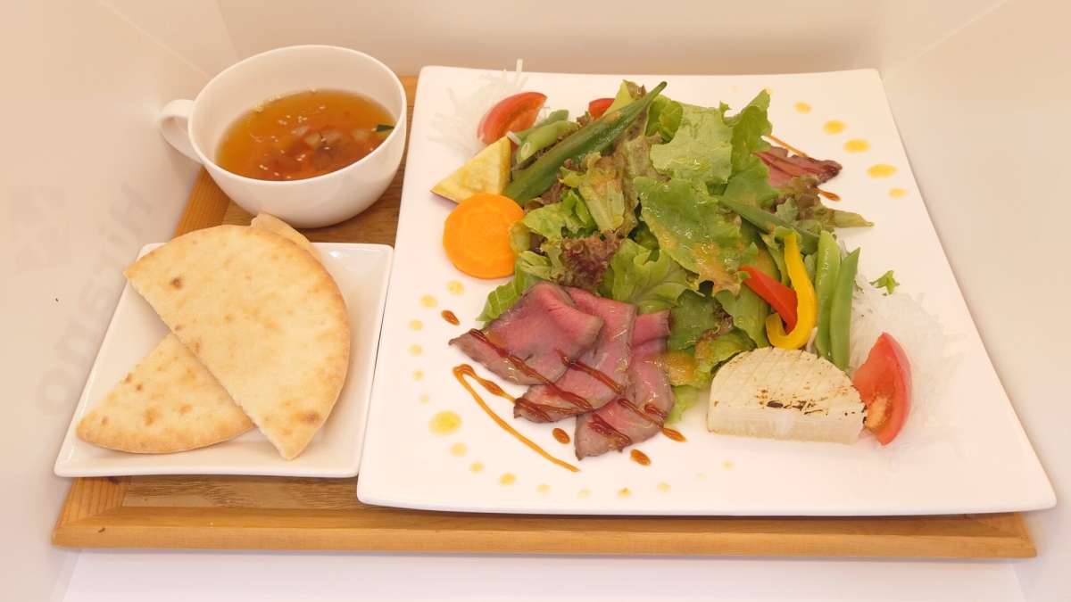 女性を中心に大人気の「サラダプレートランチ」は、自社農園のタローファームで収穫されたこだわりの減農薬野菜をふんだんに使用しており、新鮮で彩り鮮やかなヘルシープレートになっています。