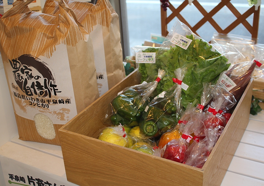 料理にも使用しているタローファーム(https://iwaki-megumi-navi.com/producer/article.html?id=68)で栽培された野菜や、提携している農家のお米は店内で販売もしています。